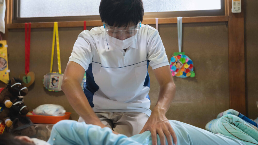 同グループのリハビリテーション花の舎病院に所属時に、小児患者へのリハビリをやりたい気持ちが強くあり、上司に相談したところ訪問看護ステーションたんぽぽに異動となる。現在は、20件ほどの小児の患者を担当し、1日4~5件ほどご自宅に訪問している。