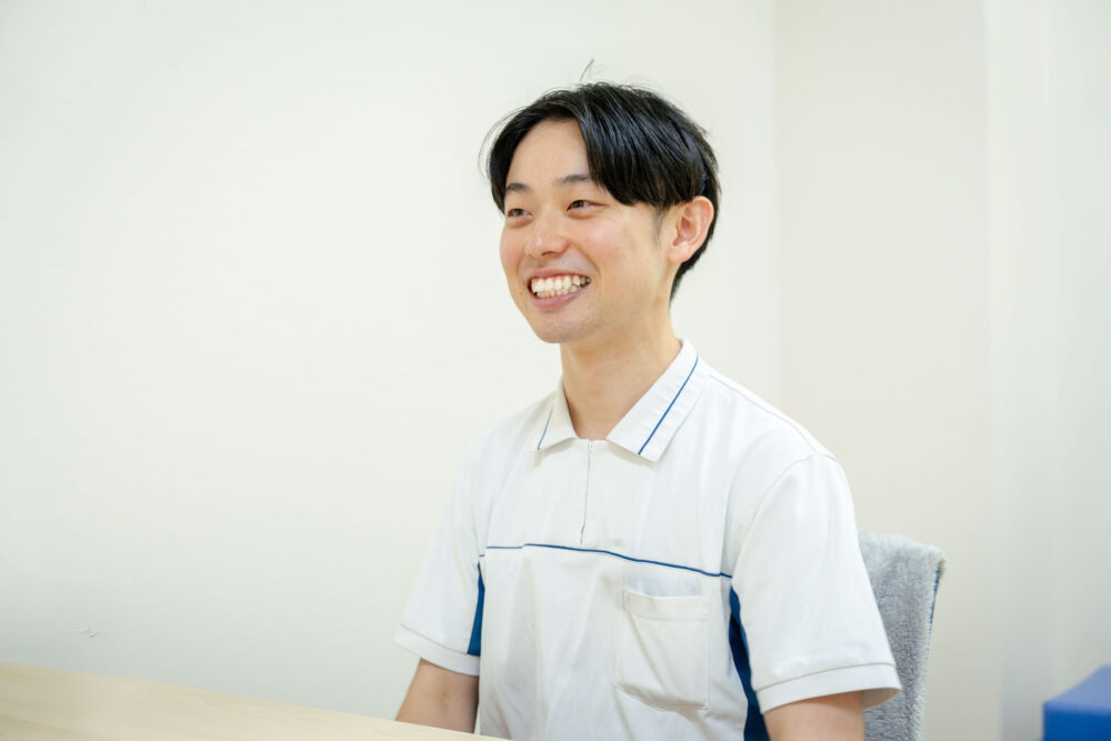 大学生時代に花の舎病院(栃木県野木町)で実習をさせていただき、多くの先輩方と接する機会がありました。印象的だったのは、患者さんを「ただ治療する」のではなく、退院後の生活やその方の可能性まで見据えた治療をされていたことです。また、先輩方の向上心の高さや手技の確かさに感銘を受け、自分もここで働きたいと強く思いました。