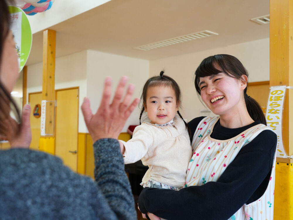 数日間保育士体験をして園内を見せていただきましたが、その時の先生方の雰囲気がとても柔らかく和気あいあいと保育をしていたり、体験に来ている私たちに対して声掛けをたくさんして頂いたり、「分からないこと、聞きたいことはある?」…と質問しやすい環境を作って頂いたりしているうちに、私もこんな環境で働きたいと思いました。