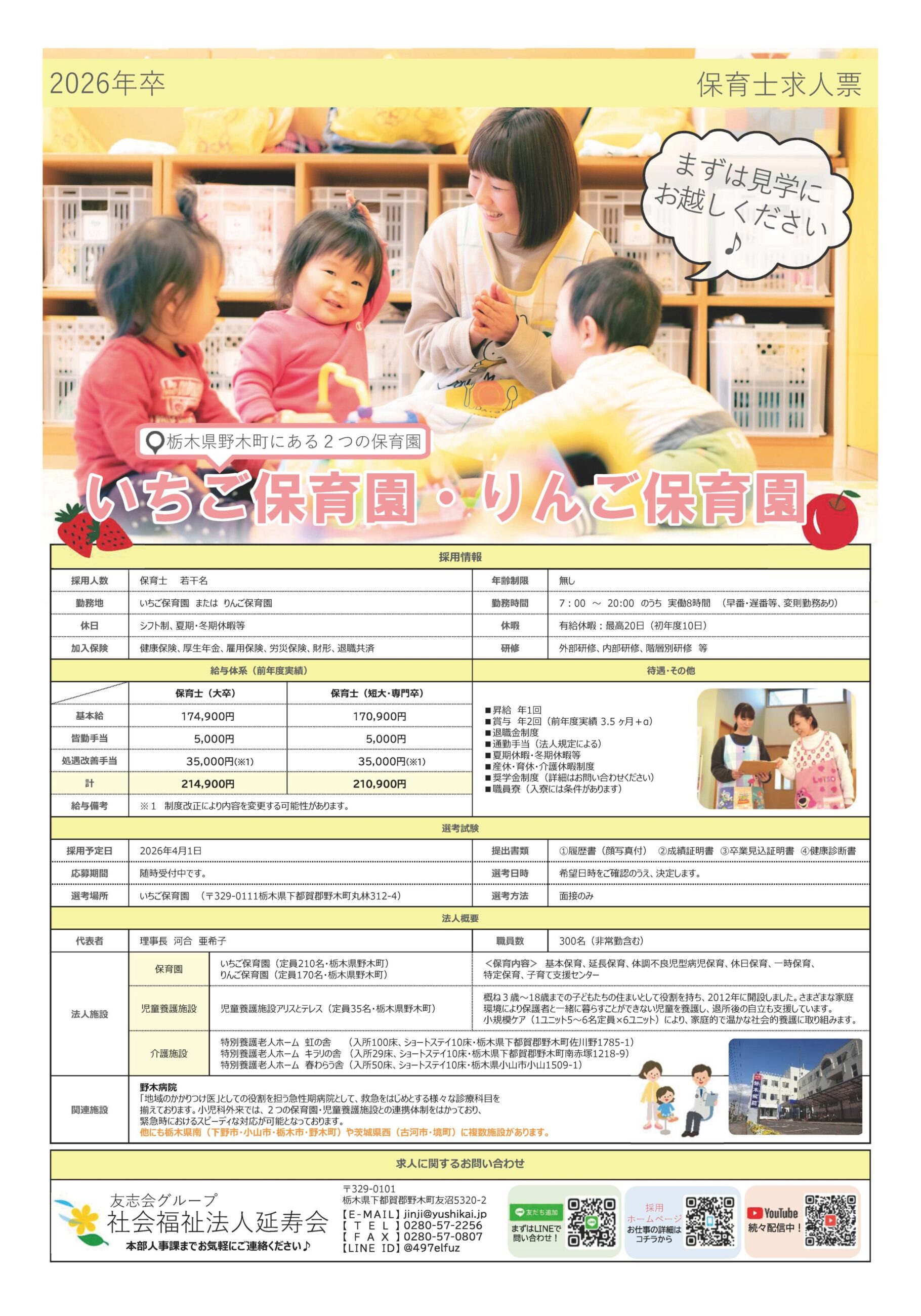 みなさんもパンフレットやホームページだけでなく、実際に見学や体験をすることをお勧めします!ぜひ一緒にお仕事しましょう