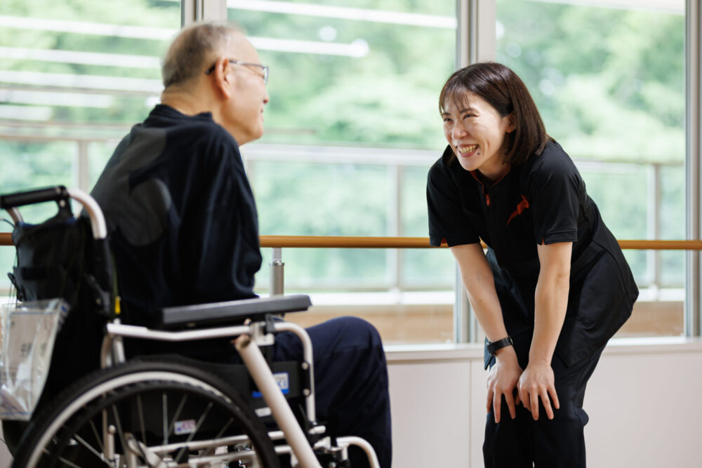 1日最大3時間のリハビリを行うリハビリテーション病院では、患者さんとゆっくりと関わることができます。「日々の入院生活もリハビリ訓練の一環」とする回復期リハビリテーションの特性上、日常生活の患者さんが自力で行えるよう介助し、心のケアをすることも看護師の役割です。患者さんの療養上のサポートや精神面のケア、医師の医療の補助など幅広い役割を担っています。