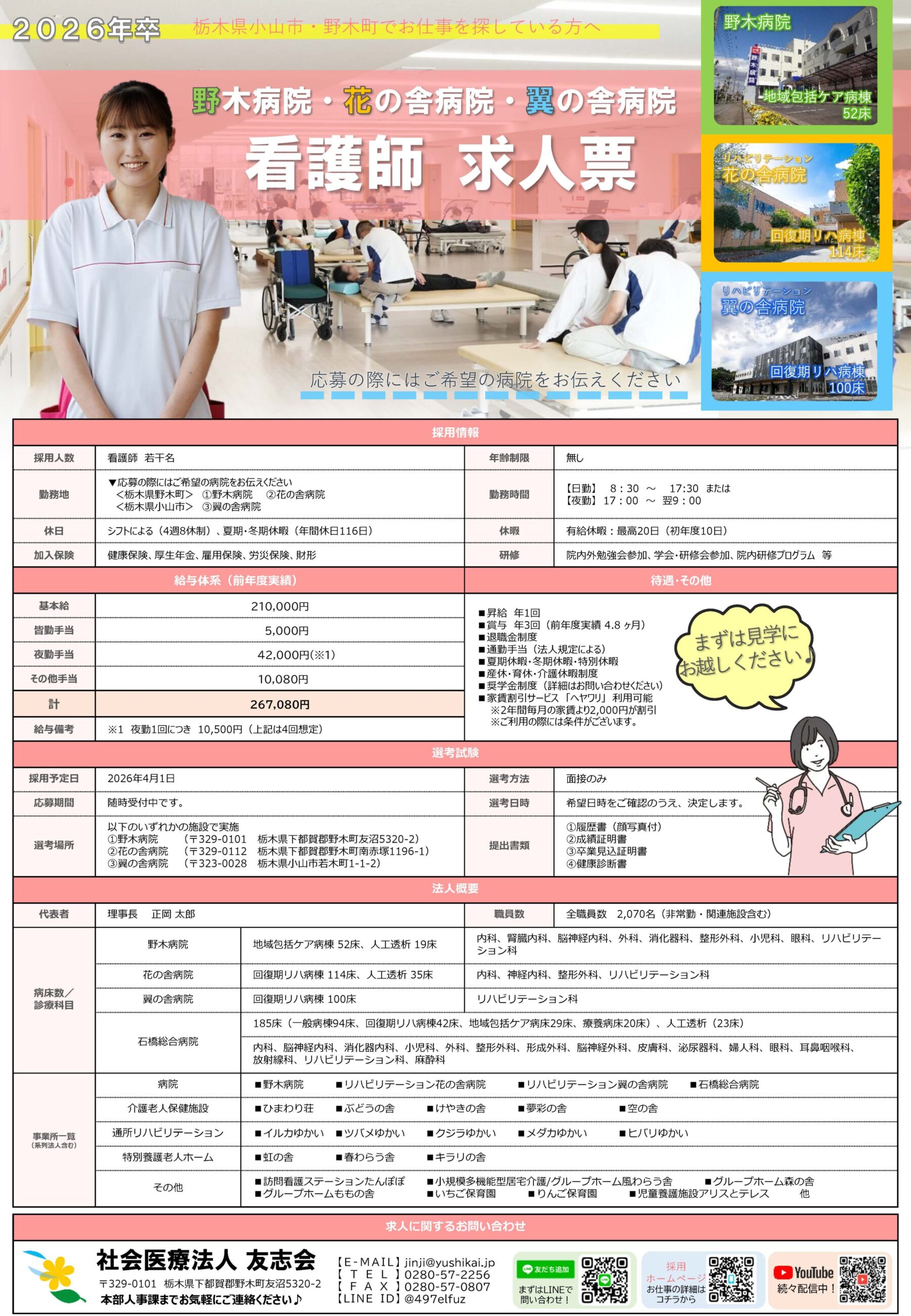各病院の特徴や一日の流れ、研修内容、福利厚生など、友志会グループ看護部の詳細をご覧いただけます。