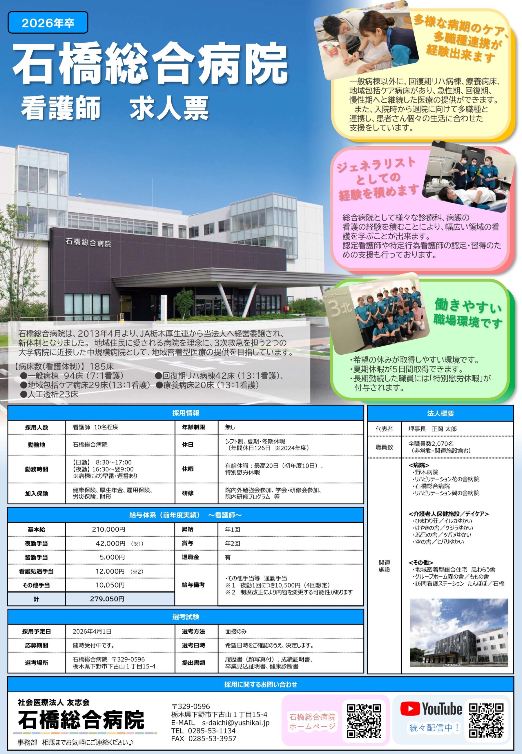 長く勤めたいと思っている方、あらゆる病期を経験したい方、一緒に石橋総合病院で働きませんか?一緒に石橋総合病院を作り上げていきましょう。